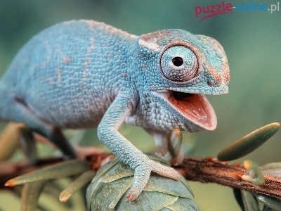 Gałązka, Pyszczek, Niebieski, Kameleon, Otwarty