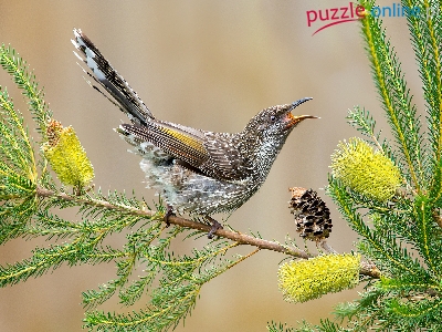 Puzzle Gałązka, Ptak, Koralicowiec kosmaty, Szyszki
