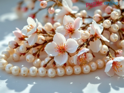 Białe, Gałązka, Kwiaty, Perły, Korale