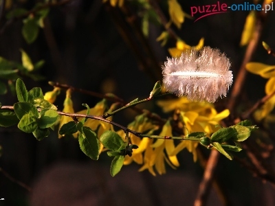 Puzzle Liście, Gałązka, Piórko