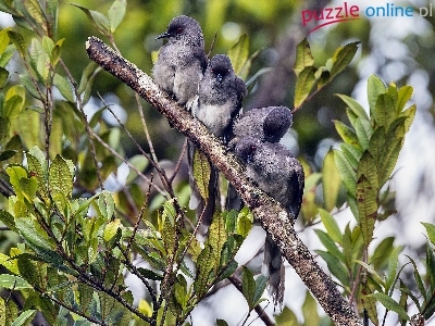 Puzzle Gałązka, Szare, Ptaszki, Liście