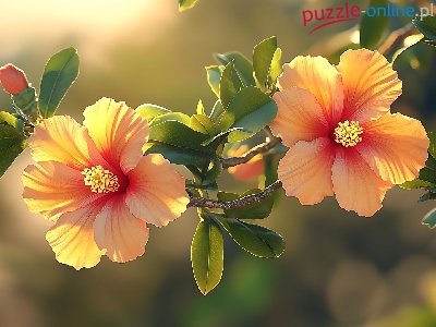 Światło, Kwiaty, Hibiskus, Gałązka, Grafika, Słoneczne