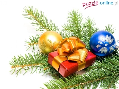 Puzzle Gałązki, Prezent, Bombki, Świerku
