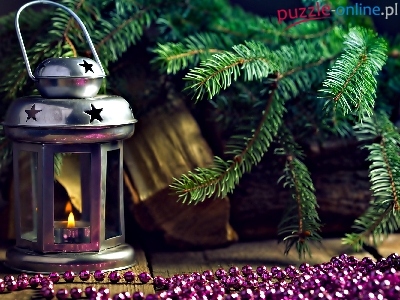 Świerkowe, Dekoracja, Lampion, Gałązki, Koraliki