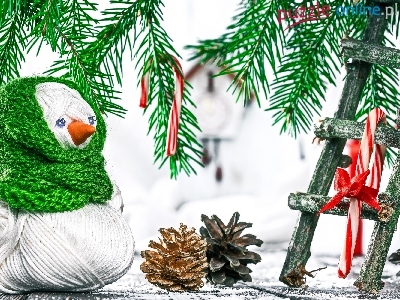 Gałązki, Dekoracja, Bałwanek, Drabina, Szyszki