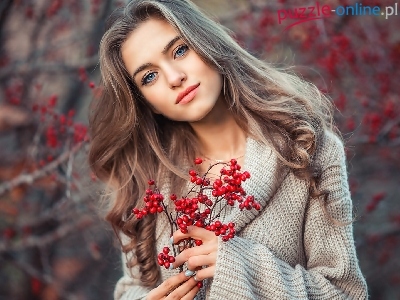 Puzzle Gałązki, Dziewczyna, Drzewa, Głóg
