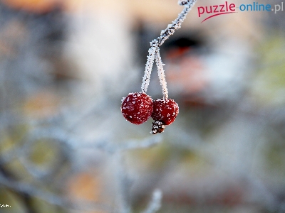 Puzzle Gałązki, Zmarznięte, Jagody, Mróz