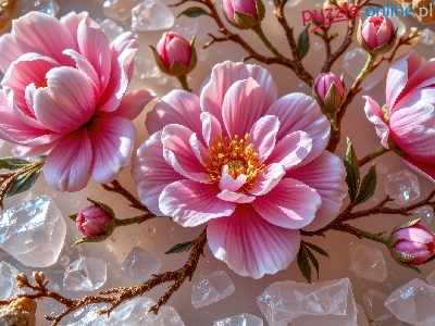 Różowe, Gałązki, Kwiaty, Kryształy, Pąki