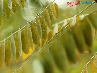 Puzzle Gałązki, Zielone, Liście, Rozmycie