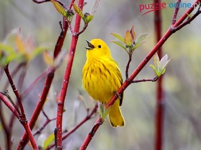 Puzzle Gałązki, Ptak, Żółty, Czerwone