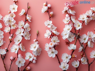 Puzzle Pąki, Białe, Kwiaty, Gałązki