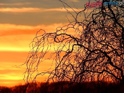 Puzzle Gałązki, Zachód, Słońca, Wierzby