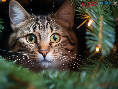 Puzzle Świerkowe, Zielonooki, Kot, Gałązki