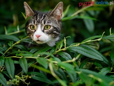 Puzzle Gałązki, Kotek, Szary, Liście