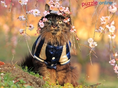 Puzzle Gałązki, Kot, Ubranko, Kwiatków