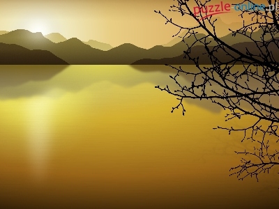 Puzzle Gałęzie, Jezioro, Blask, Złoto