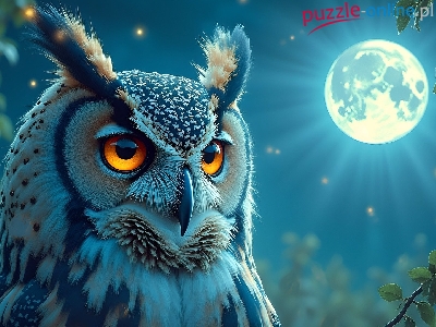 Puzzle Księżyc, Noc, Sowa, Gałęzie