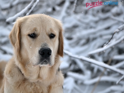 Puzzle Gałęzie, Biszkoptowy, Labrador, Śnieg