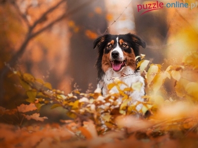 Puzzle Gałęzie, Owczarek australijski, Australian shepherd, Liście