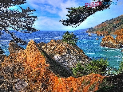 Puzzle Gałęzie, Morze, Skały, Drzew