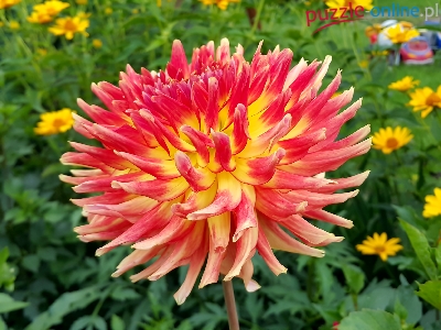 Dalia, Kwiaty, Czerwono, Żółta, Żółte