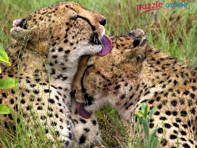 Puzzle Gepardy. Języki, Dwa, Młode, Lizanie