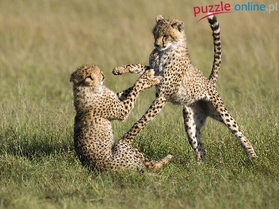 Puzzle Gepardy, Dwa, Młode, Trawa