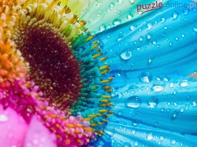 Gerbera, Woda, Kolorowy, Kwiat, Krople