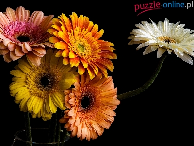 Puzzle Gerbery, Kolorowe, Kwiaty, Czarne tło