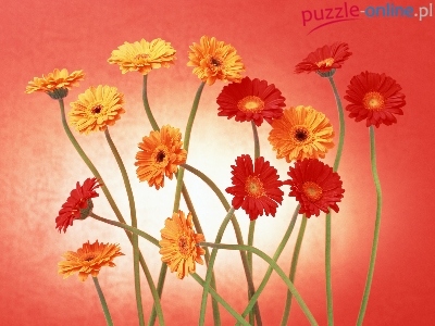 Puzzle Gerbery, Żółto, Czerwone, Łodygi