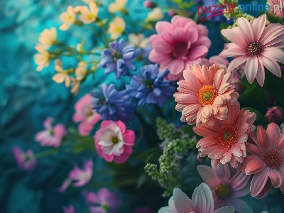 Puzzle Gerbery, Kwiaty, Różnokolorowe