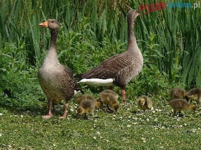Gęsi, Gąsiątka, Dwie, Dzikie, Małe