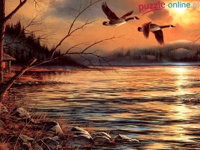 Kanadyjskie, Słońca, Terry Avon Redlin, Zachód, Gęsi, Woda