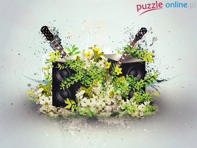 Puzzle Głośniki, Gitary, Kwiaty