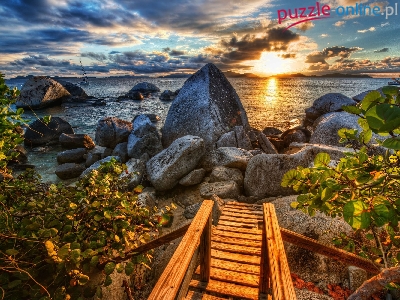 Głazy, Trap, Zachód, Słońca, Drewniany