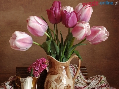 Puzzle Gliniane, Różowe, Tulipany, Dzbanki