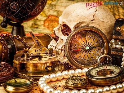 Globus, Perły, Szkatuła, Czaszka, Kompas, Lornetka