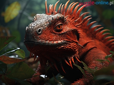 Legwan, Głowa, Czerwony, Grafika, Kolce