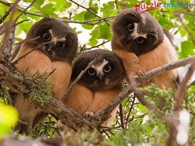 Puzzle Głowy, Sowy, Czarne, Gałąź