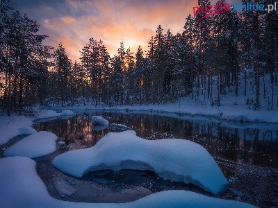 Zima, Gmina Ringerike, Jezioro, Norwegia, Drzewa, Åšnieg