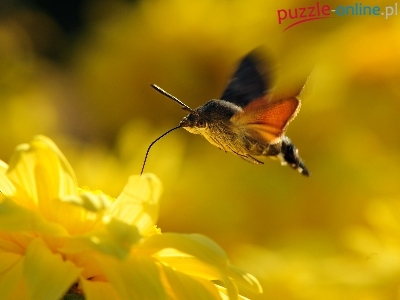 Puzzle Żółty, Koliber, Fruczak Gołąbek, Kwiat