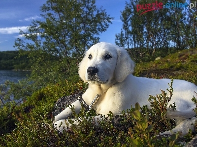 Puzzle Golden retriever, Pies, Jezioro