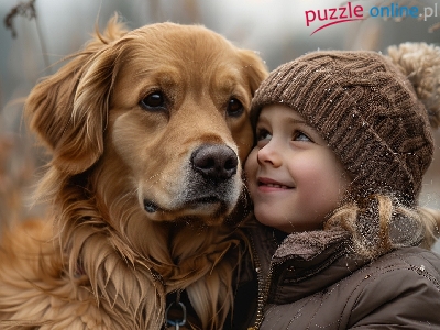 Czapka, Pies, Rudy, Golden retriever, Kurtka, Dziewczynka