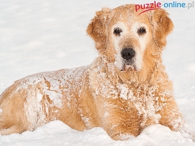 Puzzle Śnieg, Zima, Golden Retriever