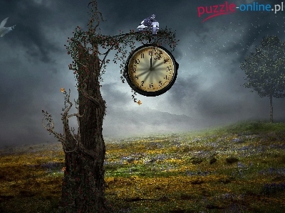 Puzzle Gołębie, Fantasy, Zegar, Ptaki