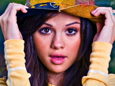 Selena Gomez, Oczy, Makijaż, Duże, Kobieta, Twarz, Kapelusz
