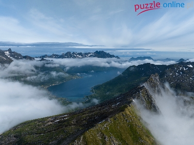 Mgła, Lofoty, Norwegia, Góra, Niebo, Jezioro