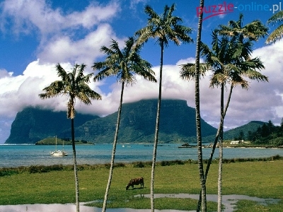Puzzle Góra, Krajobraz, Palmy, Niebo
