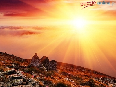 Góra, Kwiaty, Promienie, Słońca, Skałki