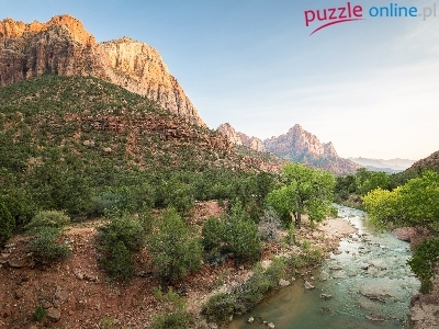 Stan Utah, Góry, Drzewa, Góra Watchman, Stany Zjednoczone, Park Narodowy Zion, Rzeka Virgin River